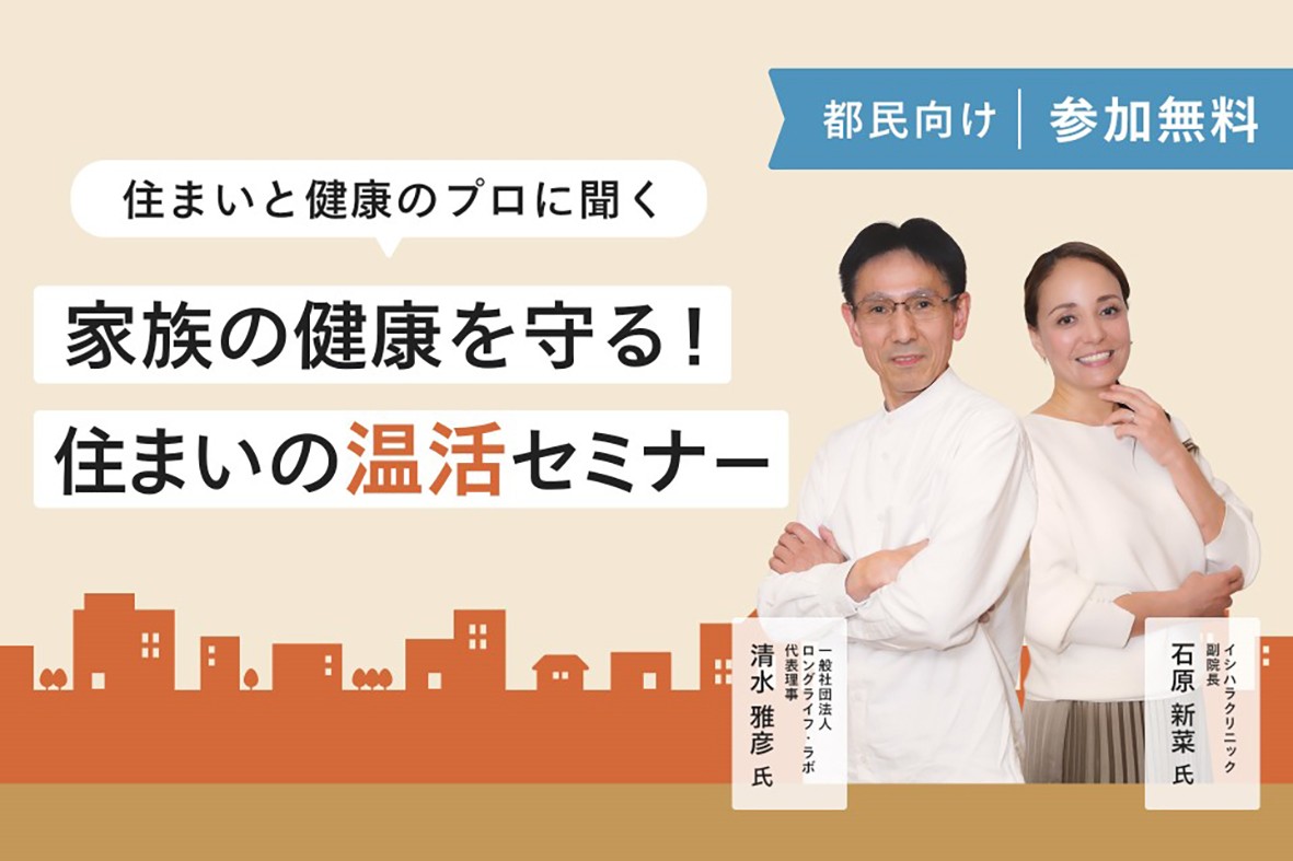 東京都では、こうした室温ストレスの課題解決を促すため、高断熱窓やドアへの改修に対する助成事業を展開している。さらに、この調査結果を踏まえ、既存住宅の省エネ改修を促進する目的で、「家族の健康を守る!住まいの温活セミナー」を東京都内で複数回開催する。セミナーでは、住宅に関する専門家として、省エネ設計に精通した清水氏と冷え治療・温め治療の専門医のイシハラクリニック石原新菜副院長が登壇、家族が健康に過ごすための住まいの温活について講演を行う。会場では実際に断熱窓の展示を用意する他、専門相談員への個別 相談が行えるコーナーも用意する。